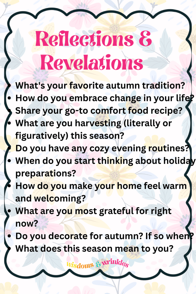 1. These are such fun prompts. Though we don’t have many traditions left now that the boys are all grown. I did decorate the house for fall last week and we’ll keep that up until after Thanksgiving in November then switch it out with Christmas decor.